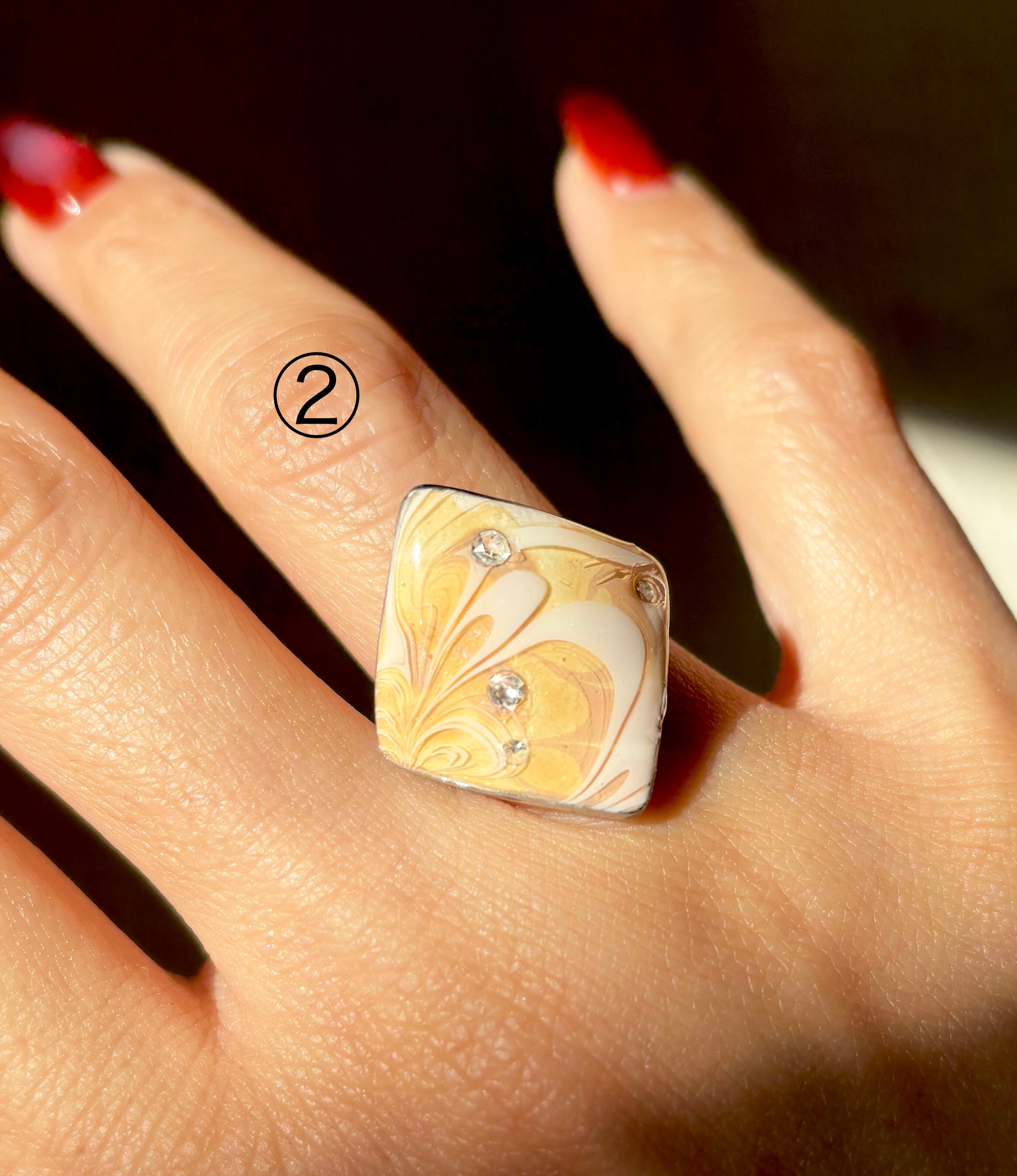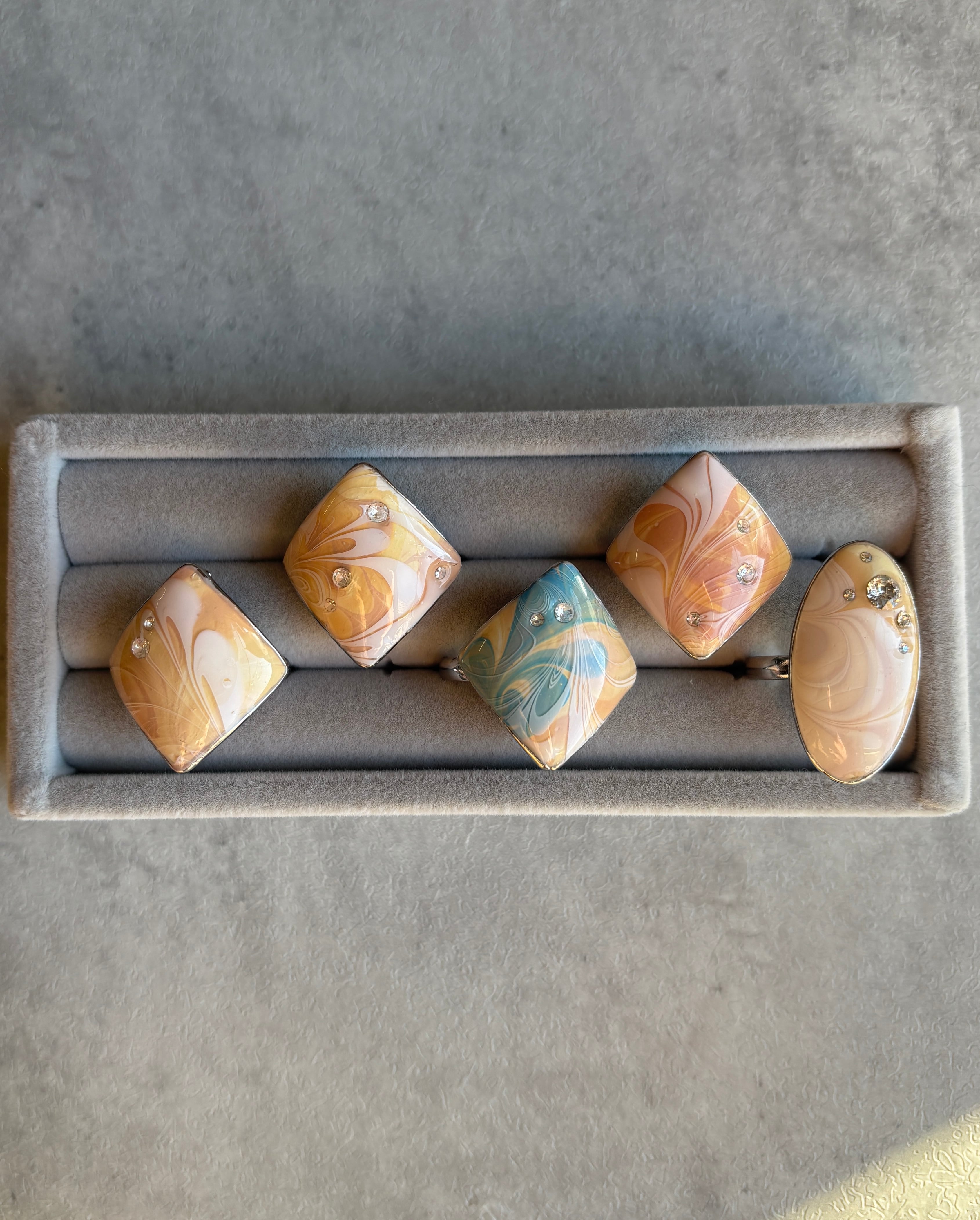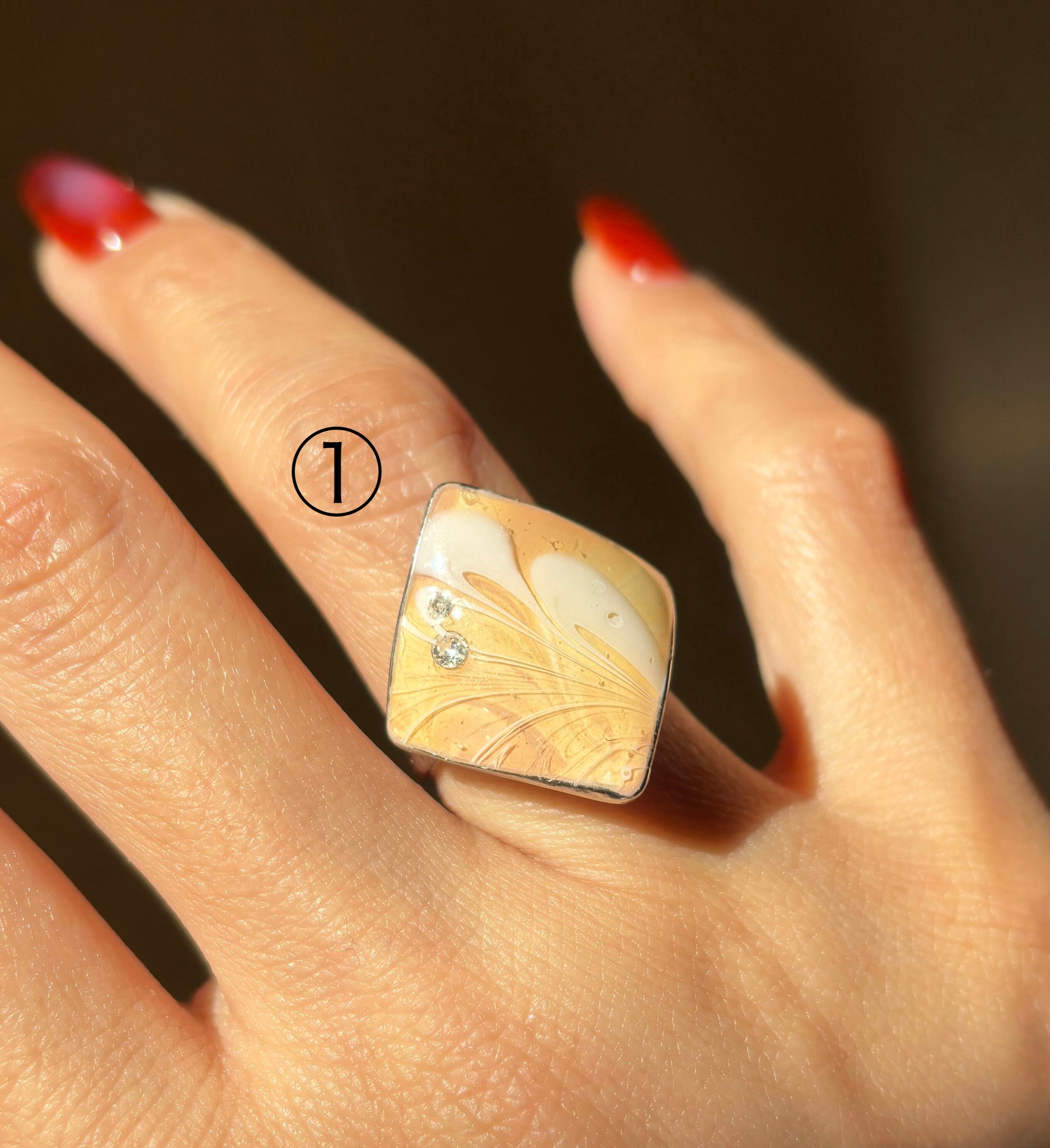 こちらは、指にフィットするひし型&オーバル型のフリーサイズリング「ROTONDE」です。多様なシーンで活躍するアイテムとなっておりますので、さまざまなスタイルに合わせてお楽しみいただけます!
