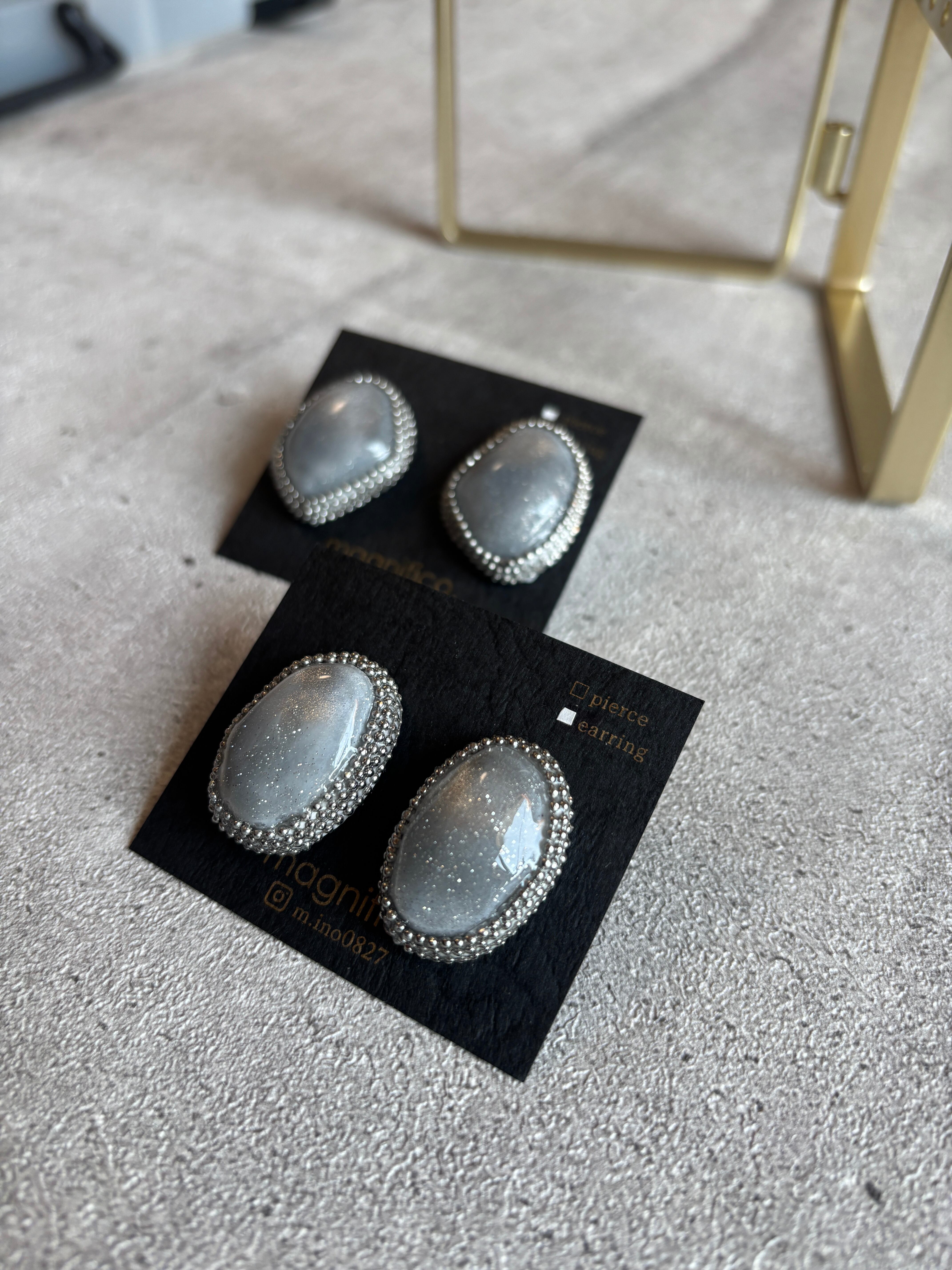 シルバーカラーの中に更に粒子の細かいラメをマグネットで集めて輝きを出しています。