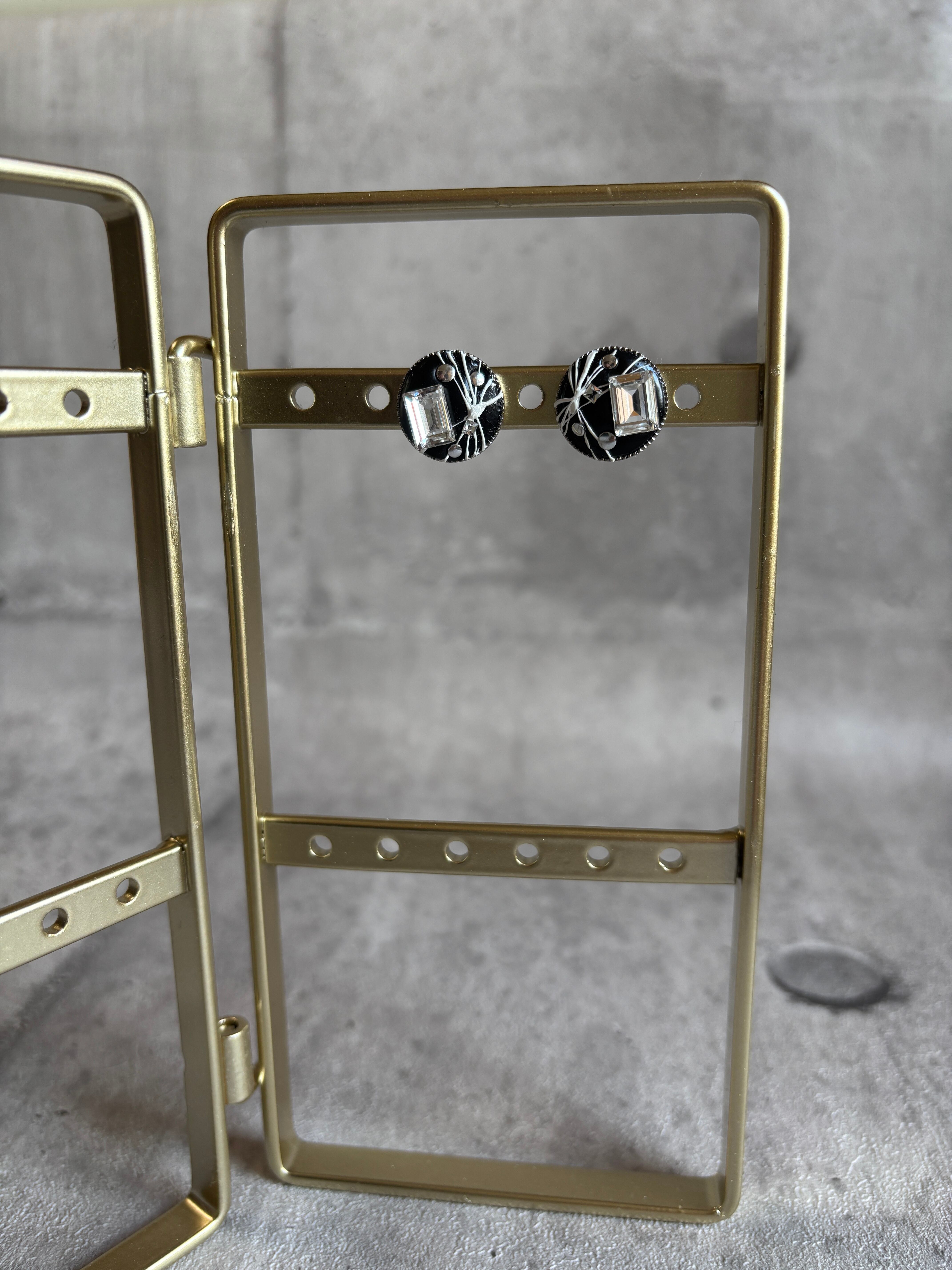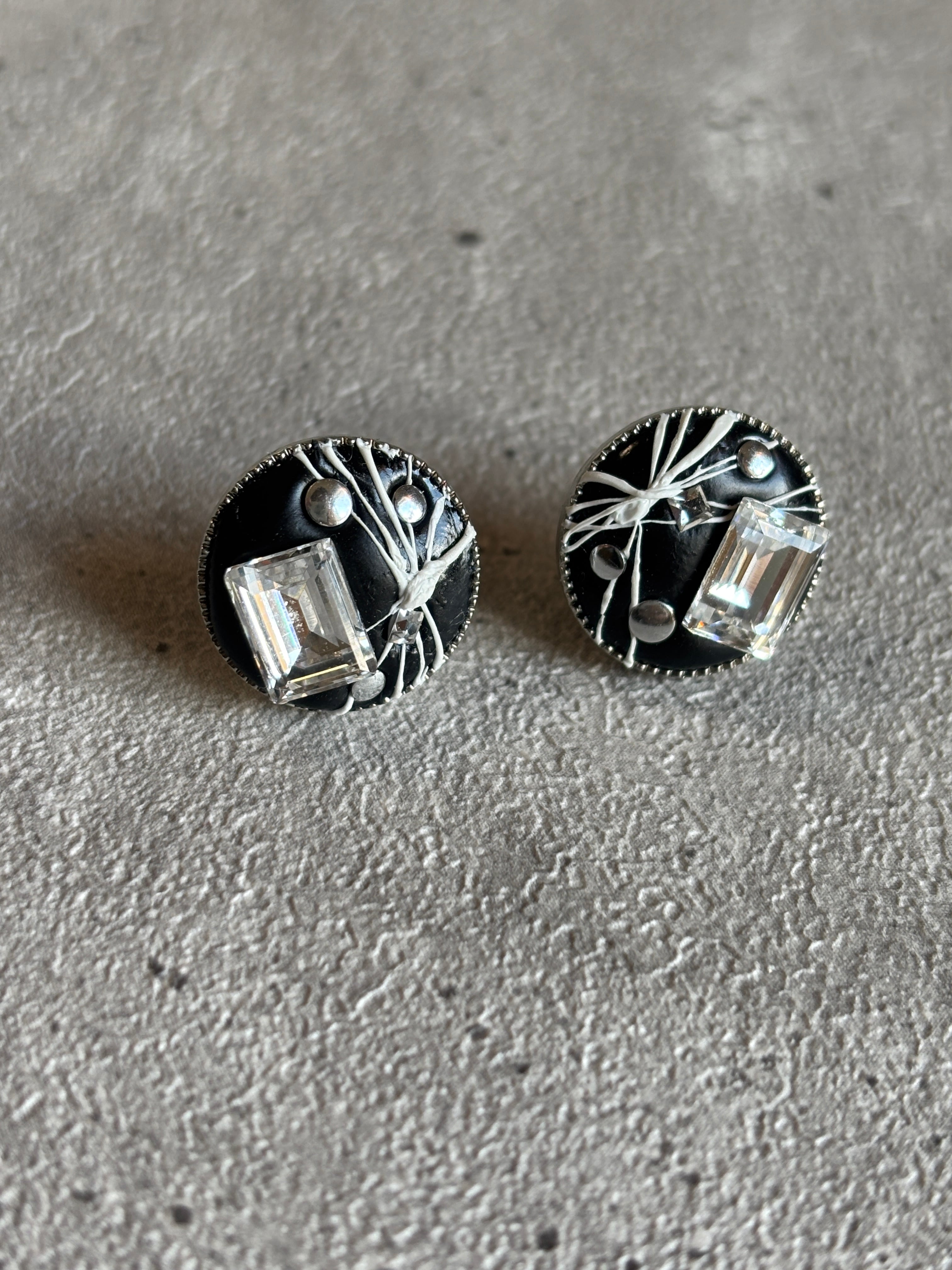 耳元のアクセントにブラックのホワイトの色合いの丸皿ピアスです。