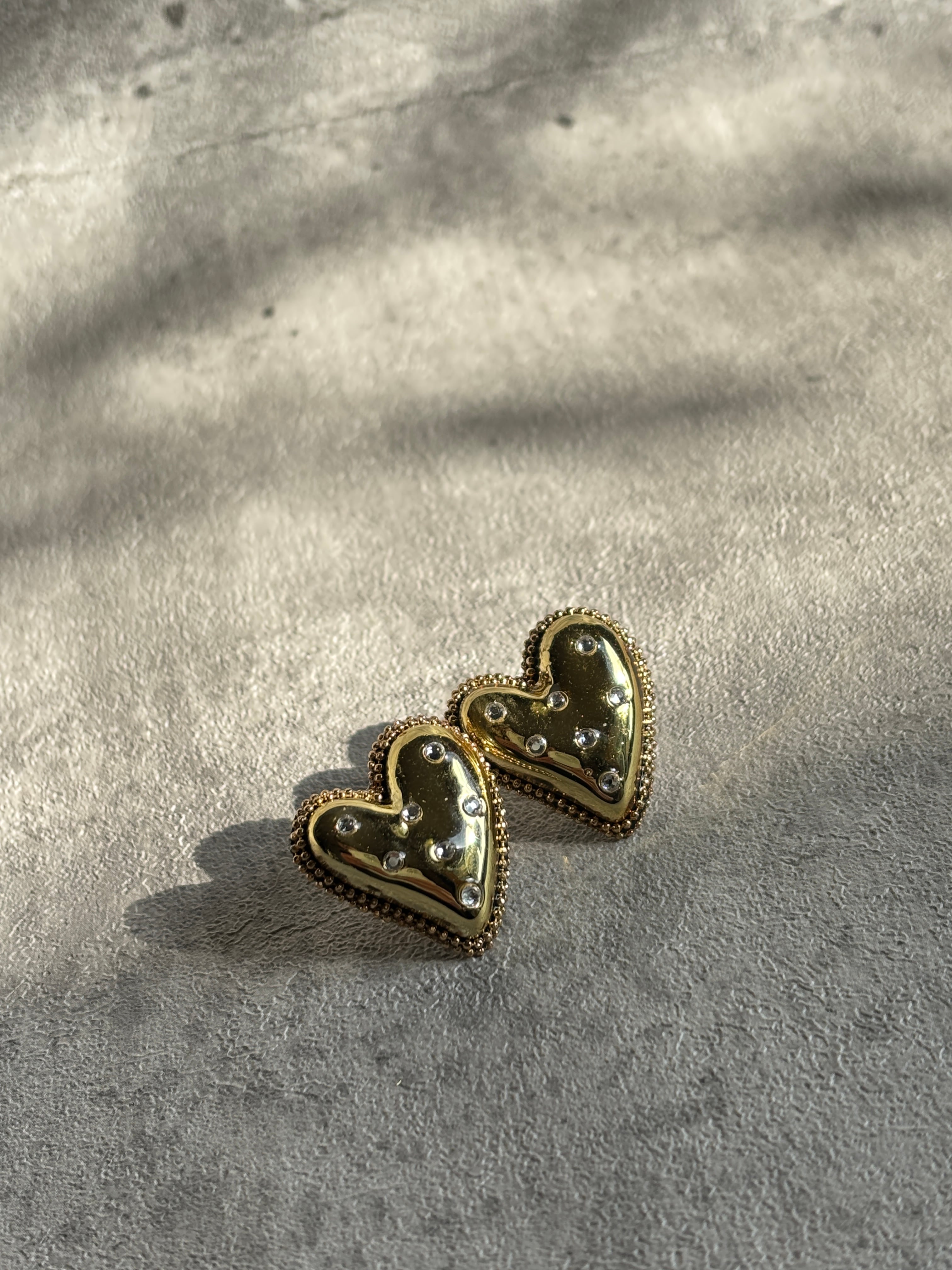 メタリックなハートにクリスタルを施しました