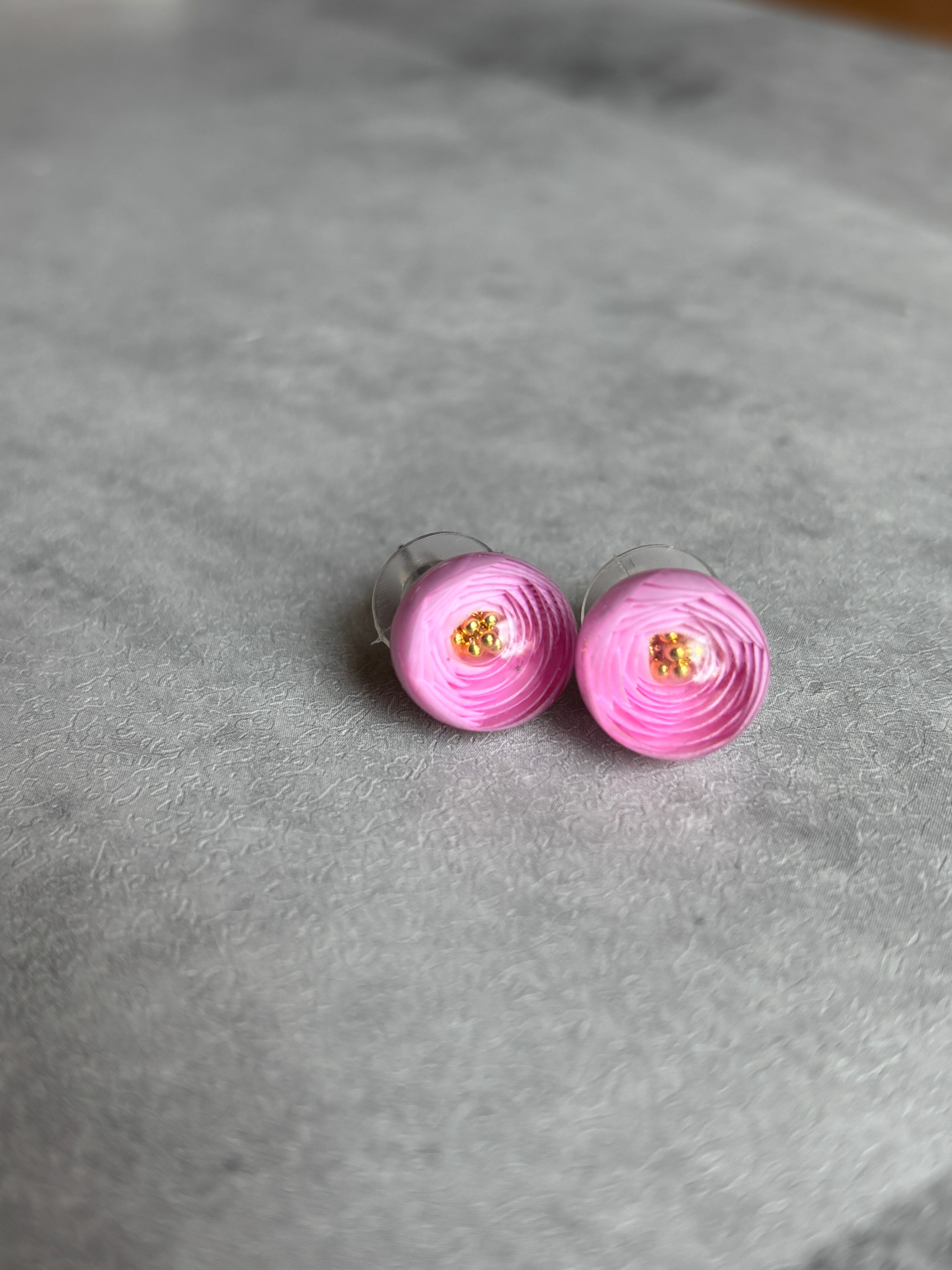 花芯から花びらを一枚一枚手描きで仕上げたフラワーをピンクカラーで可愛らしく。