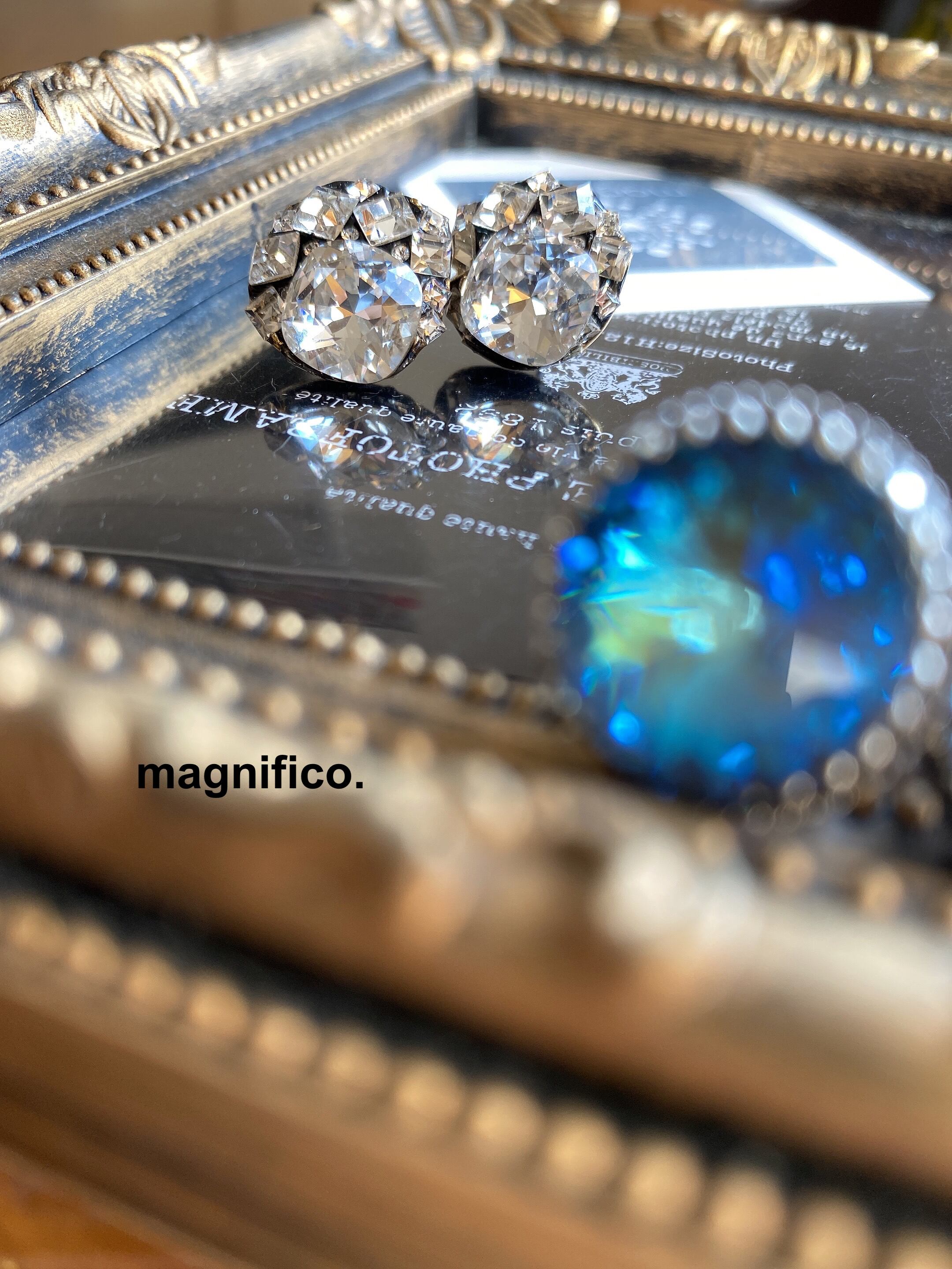 スクエアのスワロフスキー®︎クリスタルをたくさん使用したハンドメイドピアスです。アクセントにいかがでしょうか?キラキラですが甘すぎないテイストでクリスタルのみ使用しておりますので色んなシーンで使って頂けると思います♪