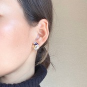 このピアスのポイントは、オリジナルで天然石の様に制作したパーツを使用してクリスタルチャトン、メタルパーツ等色んなパーツをミール皿の上に盛り付けピアスにしました♡